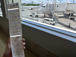 次は沖縄(那覇)経由。こちらはいい時間の便が両方とも空いていたのでこの経路に決定!