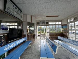 翌日(貸切当日)、多良木から貸切の乗車駅である川内に向かいました。道中、宮之城線の廃線跡を辿ることになったのでついでに永野鉄道記念館(薩摩永野駅跡)を見学しました。ここにはかつて使用されていた駅舎、ダブルスリップポイント、腕木式信号機、車掌車などが保存されており、かつてここに鉄道が走っていたことを実感しました。