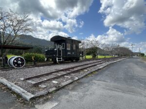 翌日(貸切当日)、多良木から貸切の乗車駅である川内に向かいました。道中、宮之城線の廃線跡を辿ることになったのでついでに永野鉄道記念館(薩摩永野駅跡)を見学しました。ここにはかつて使用されていた駅舎、ダブルスリップポイント、腕木式信号機、車掌車などが保存されており、かつてここに鉄道が走っていたことを実感しました。